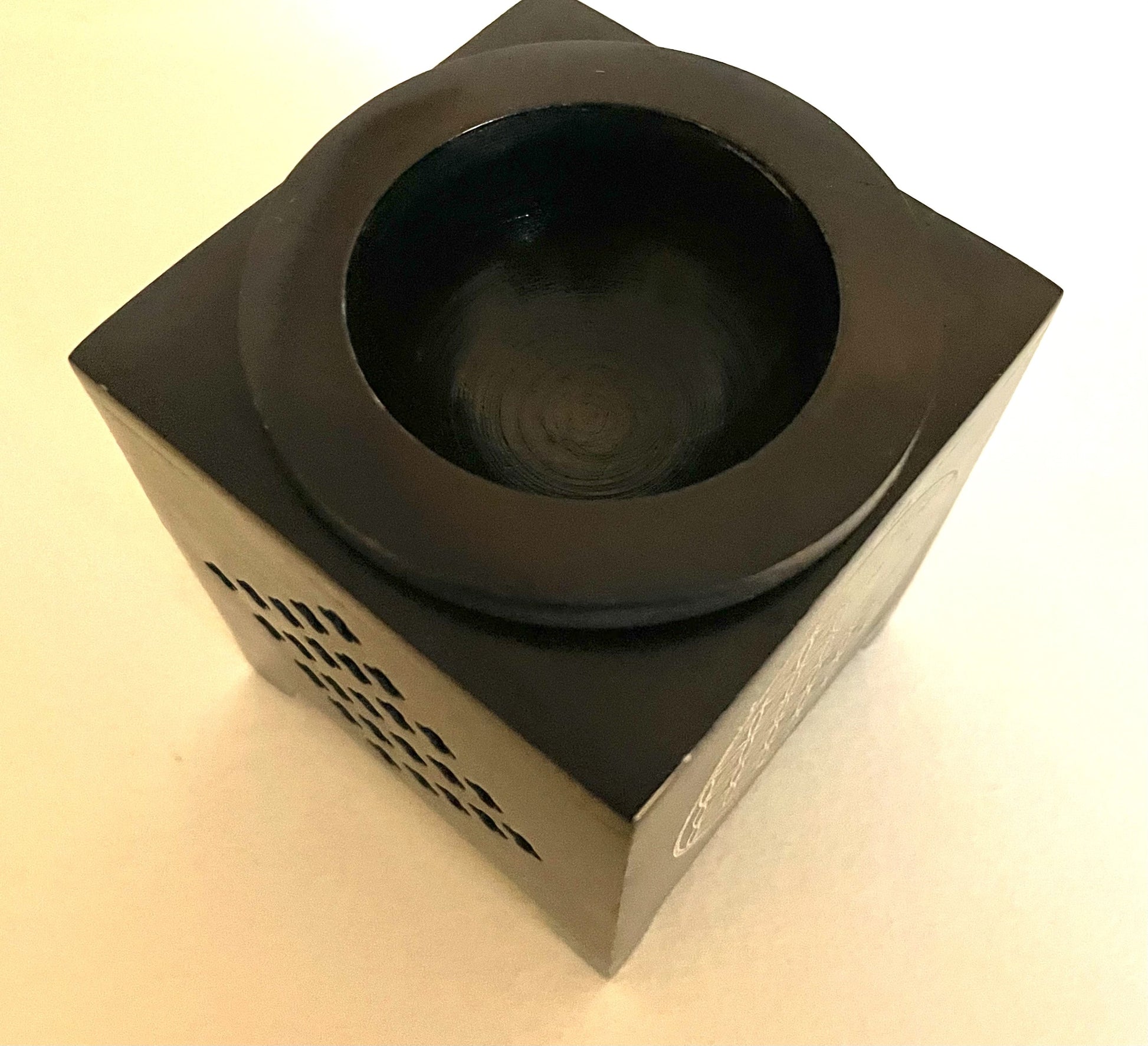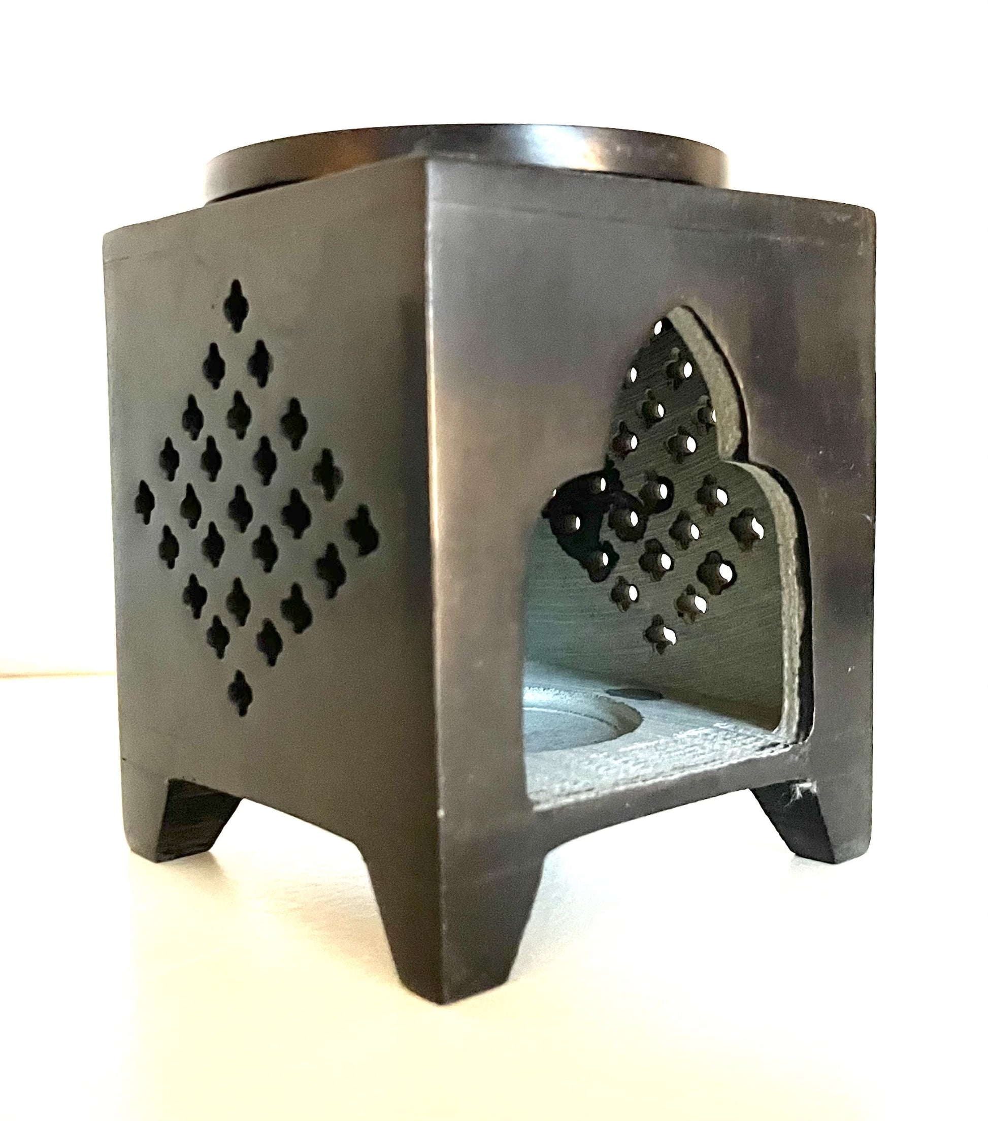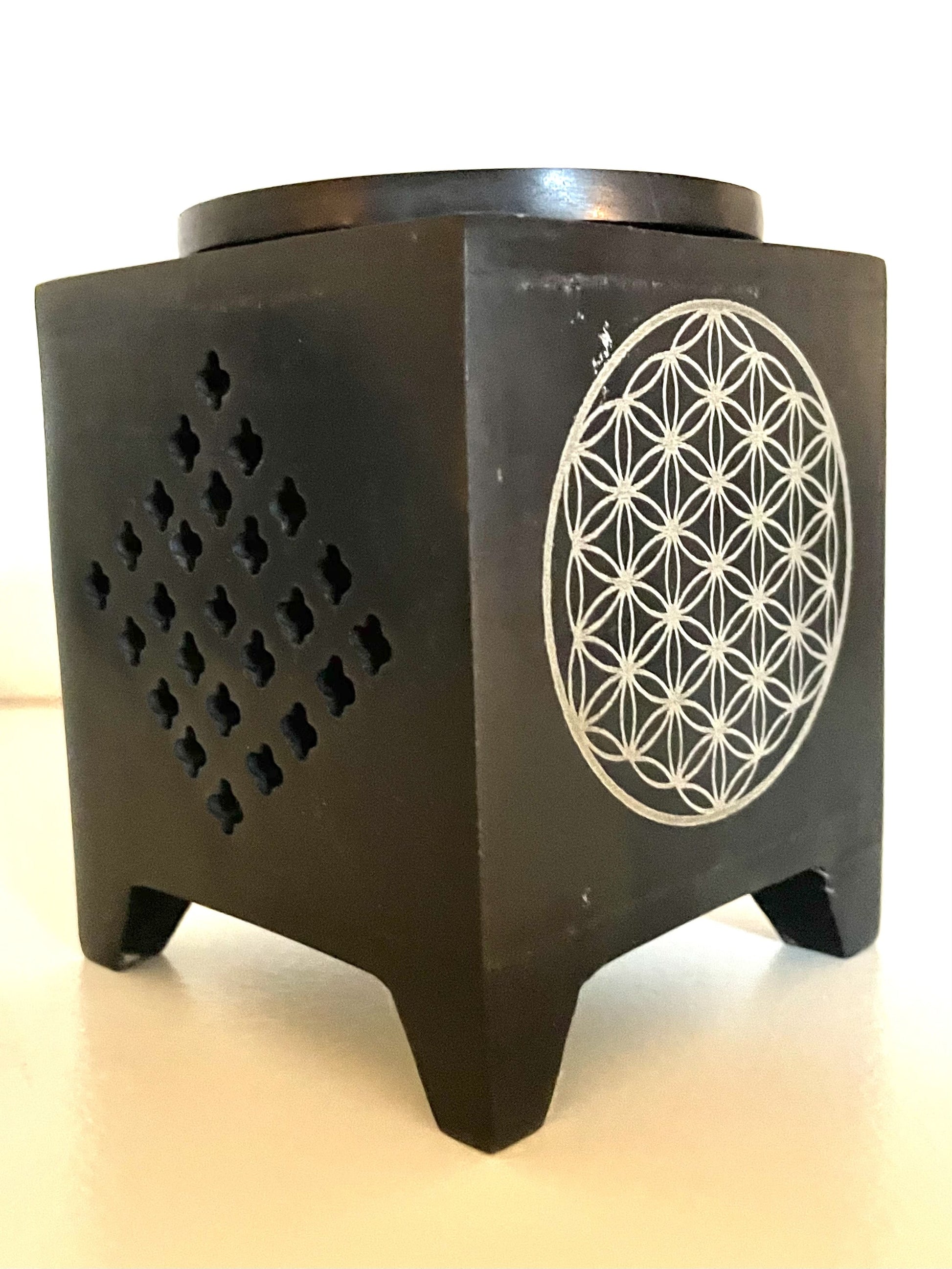 Duftlampe klein Blume des Lebens Orient quadratisch ist echte Handarbeit aus dunklem Speckstein