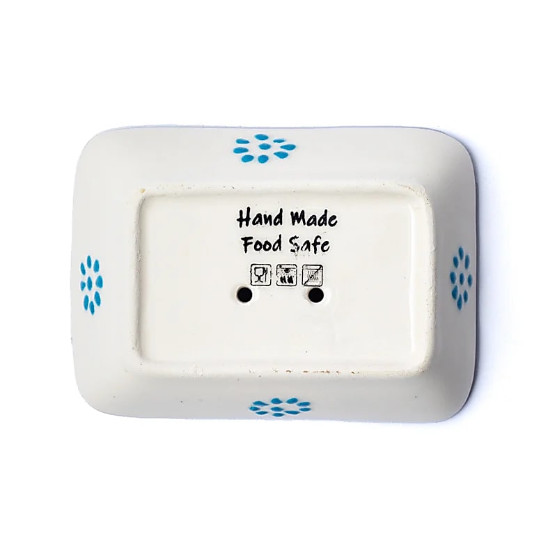 Seifenschale aus Keramik mit zwei Löchern im Boden, damit überschüssiges Wasser ablaufen kann.