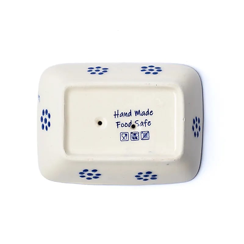 Seifenschale aus Keramik mit zwei Löchern im Boden, damit überschüssiges Wasser ablaufen kann.
